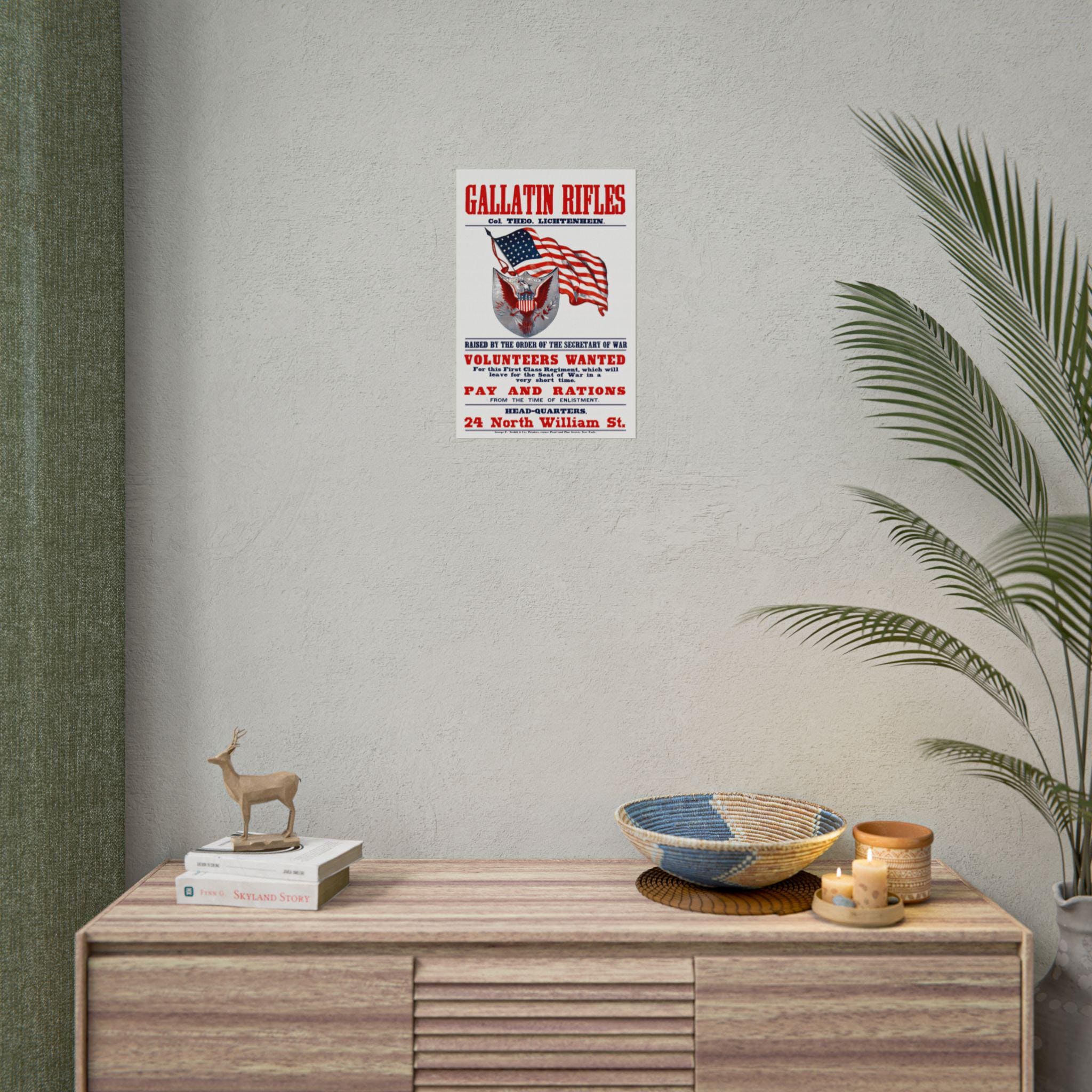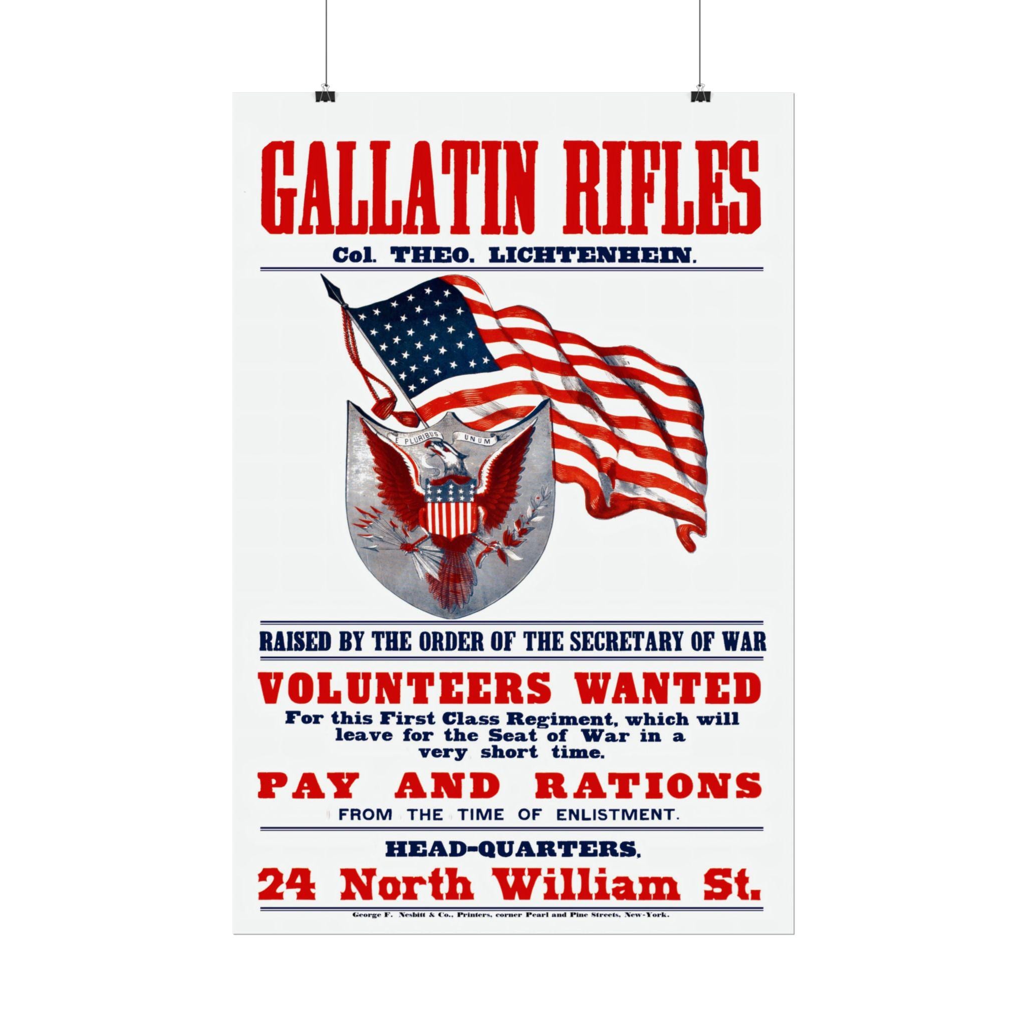 Step back into the feverish early days of the Civil War with this meticulously restored recruitment broadside for the Gallatin Rifles. Under the command of Col. Theodore Lichtenhein, this unit was a cornerstone of the Union’s multi-ethnic coalition, eventually merging into the 58th New York Volunteer Infantry—famously known as the "Polish Legion."